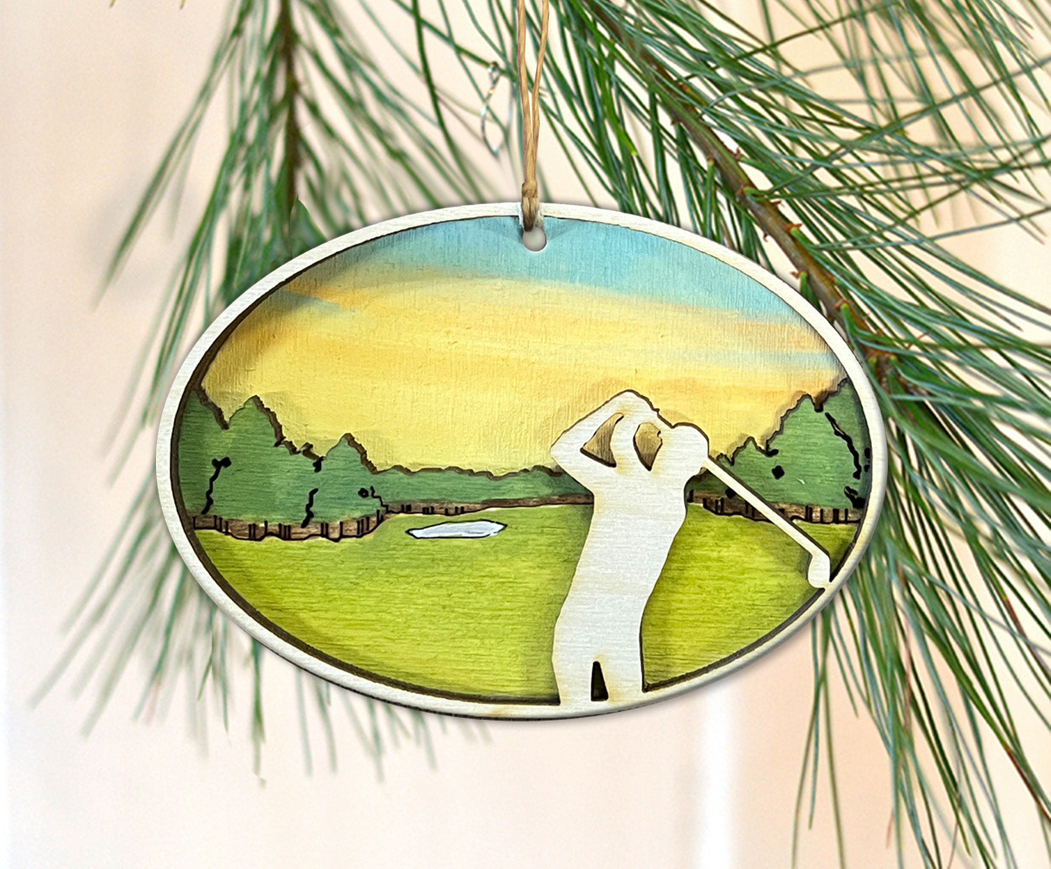 Bring the green to your home with this golf ornament - it's a hole in one for any golf fan! Designed and hand painted in the Adirondacks of upstate NY.
