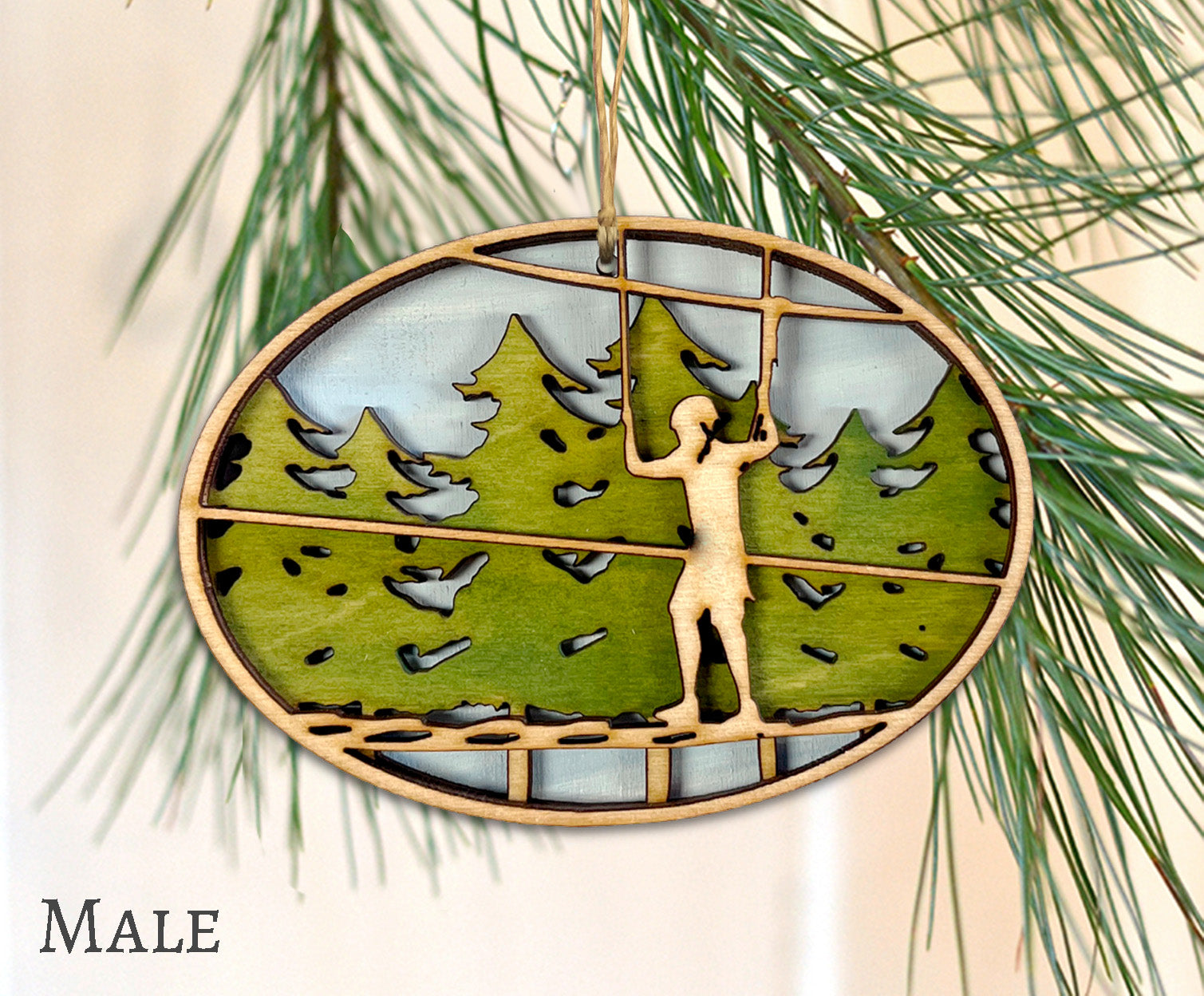 Have you experienced an exciting adventure or ropes course? This hand painted ornament will remind you of those great adventures. Designed and hand painted in the Adirondacks of upstate NY.