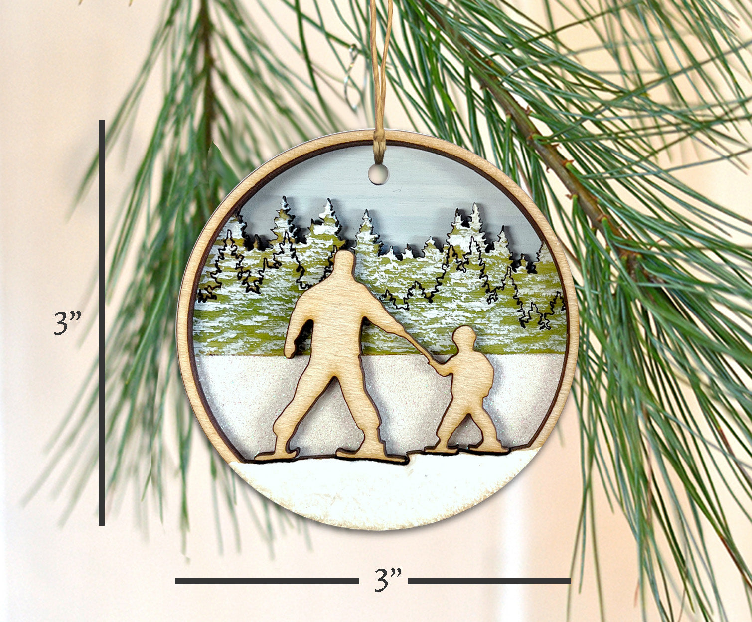 Celebrate the unforgettable first turns on the bunny hill with this learning to ski ornament, a heartwarming tribute to snowy beginnings and mountain memories. Designed and hand painted in upstate NY.